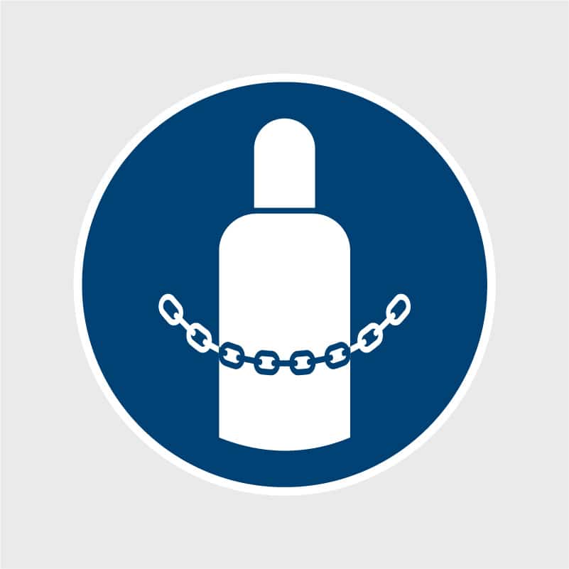 Sticker “Gasflessen vastzetten verplicht” ISO 7010 – M046