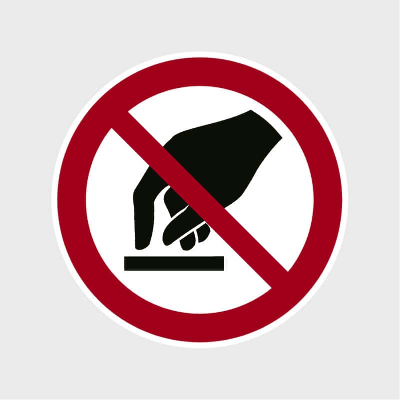 Deze verbodssticker kan worden aangebracht op alle vlakke ondergronden zoals kunststof, deuren, ramen, metalen, muren en ondergronden met een lichte structuur. De sticker wordt gemaakt van een hoge kwaliteit vinyl met een laminaat laag erover heen. Hierdoor is de sticker bestendig tegen zonlicht en water en blijft de sticker jarenlang plakken. Laat door middel van deze sticker zien dat aanraken verboden is. Kies uit één van de afmetingen.