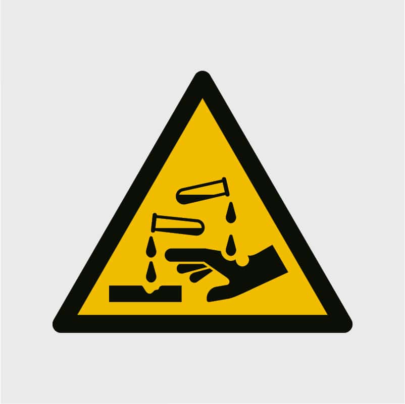 Sticker “Bijtende stoffe waarschuwing” W023 – ISO 7010