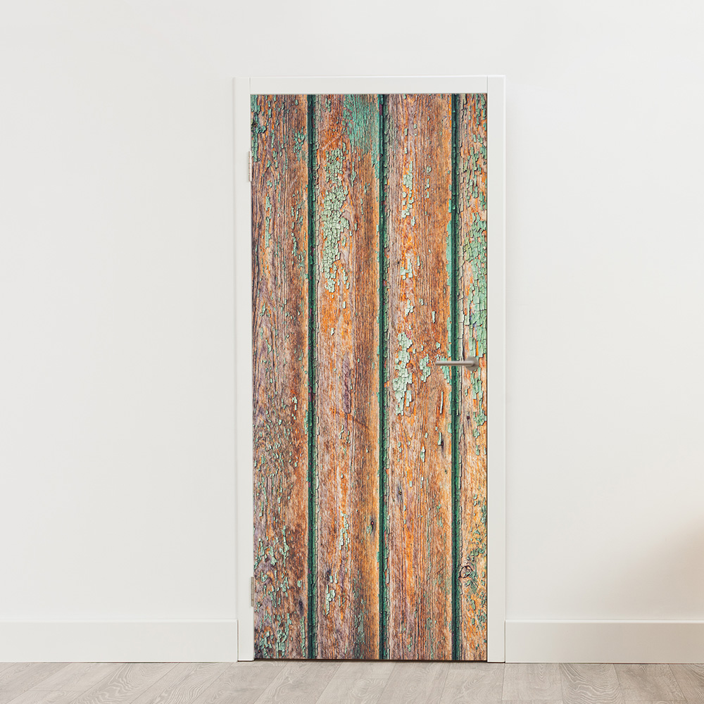 Eigenschappen en formaten Deursticker / poster afgebladerde turquoise deur