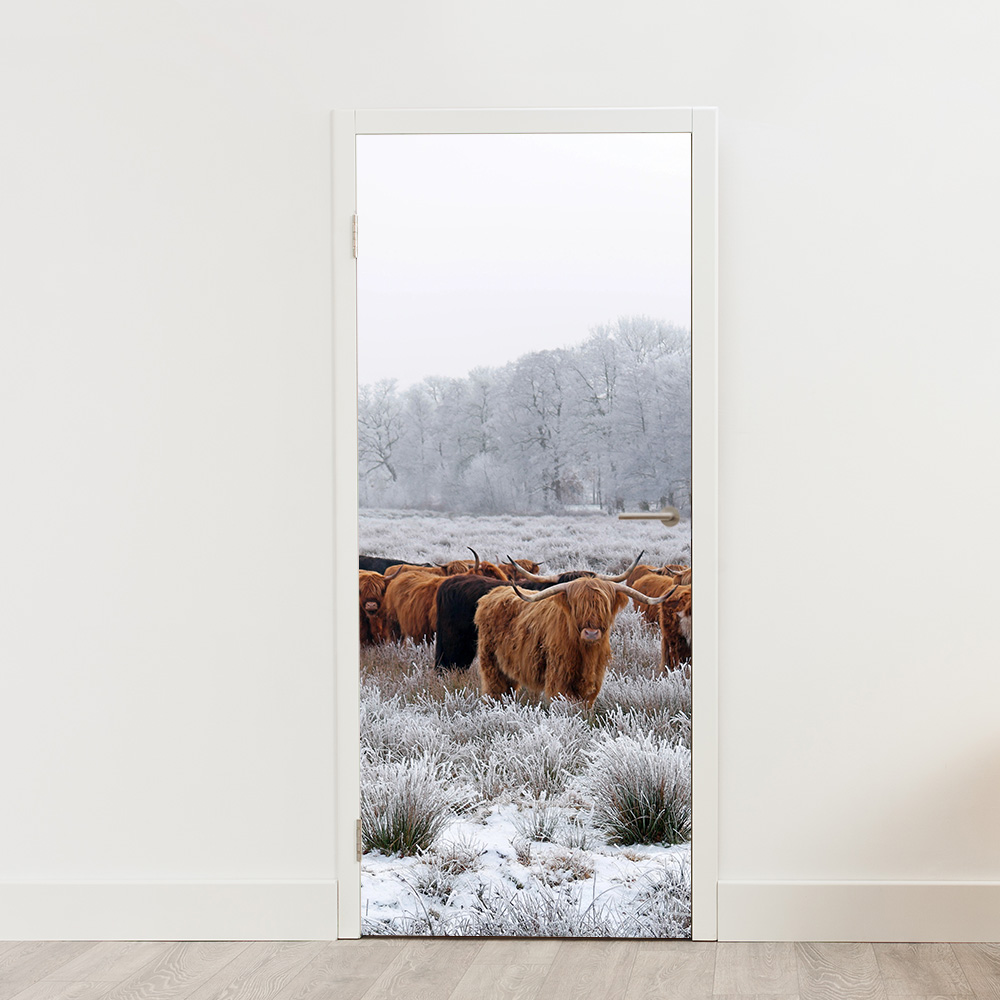 Breng de winterse charme van Schotse hooglanders in je huis met de Deursticker / poster schotse hooglanders in de sneeuw. Deze adembenemende deursticker laat hooglanders zien in een sneeuwlandschap, perfect voor een warme en natuurlijke sfeer in je interieur. Ideaal voor de liefhebber van natuur en dieren, deze sticker is een echte eyecatcher die elke ruimte een unieke uitstraling geeft.