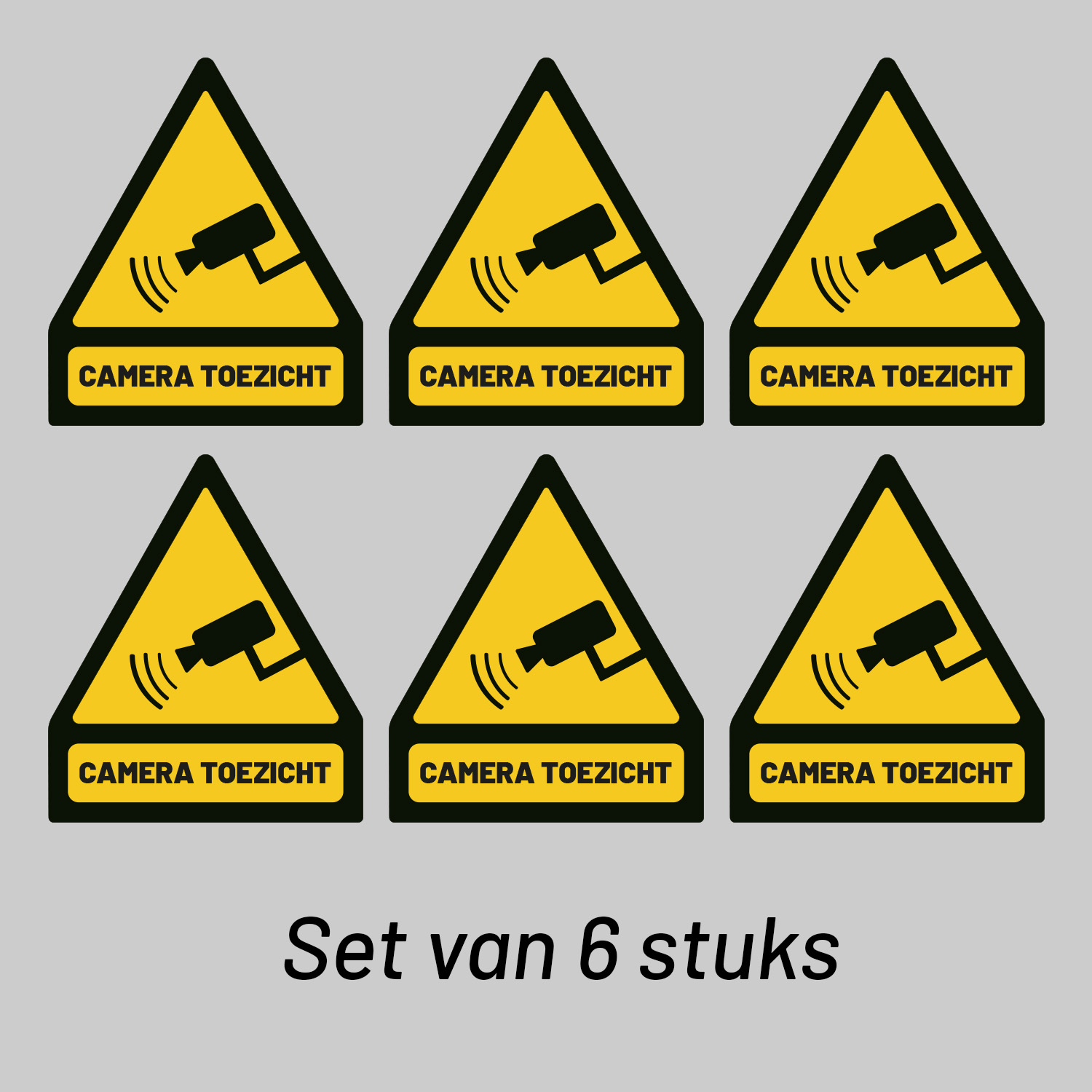 - Set van 6: Met deze set van 6 stickers kun je meerdere toegangspunten en strategische plekken rondom je eigendom markeren, waardoor de waarschuwing vanuit alle hoeken zichtbaar is.