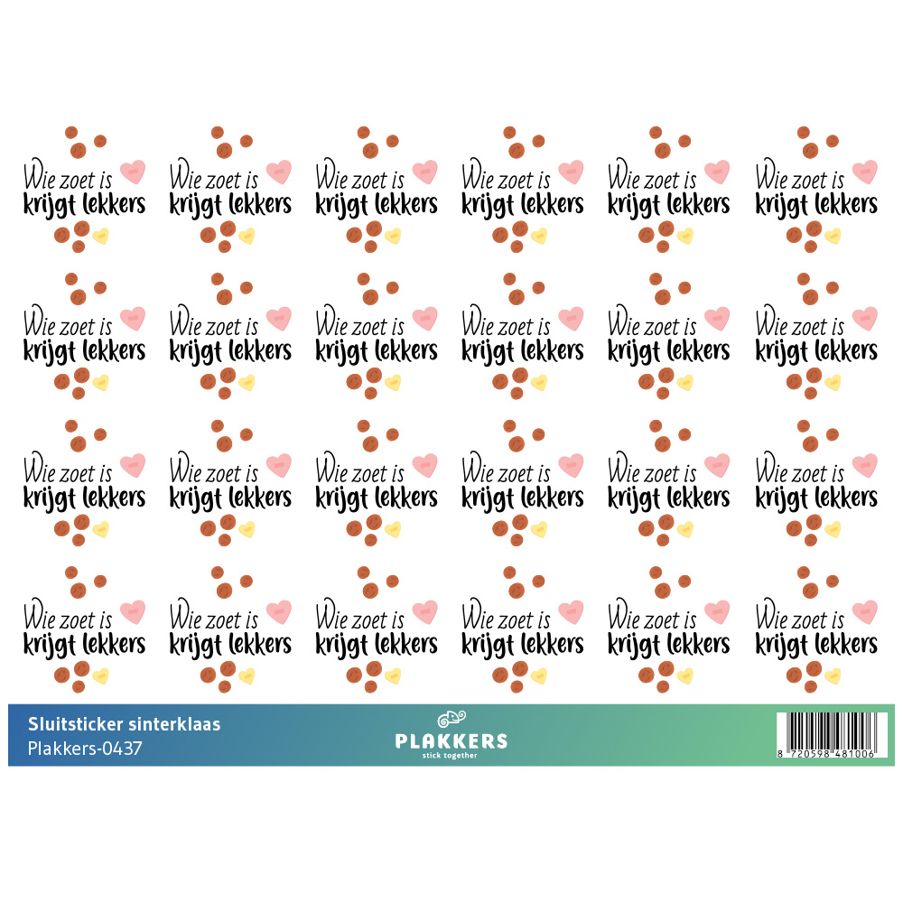 Cadeaustickers Sinterklaas “Wie zoet is krijgt lekkers” – 24 stuks