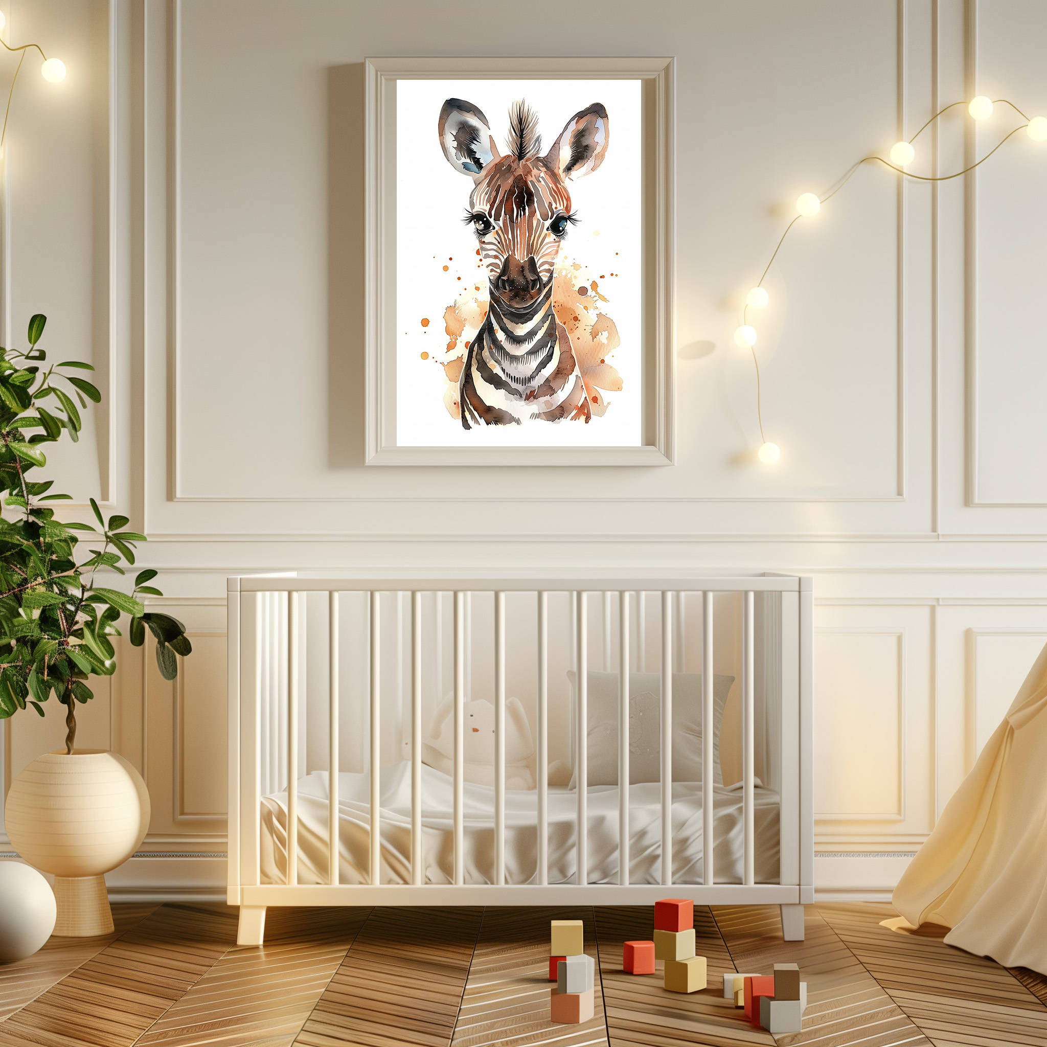 Maak de kinderkamer af met onze Poster zebra waterverf kinderkamer!