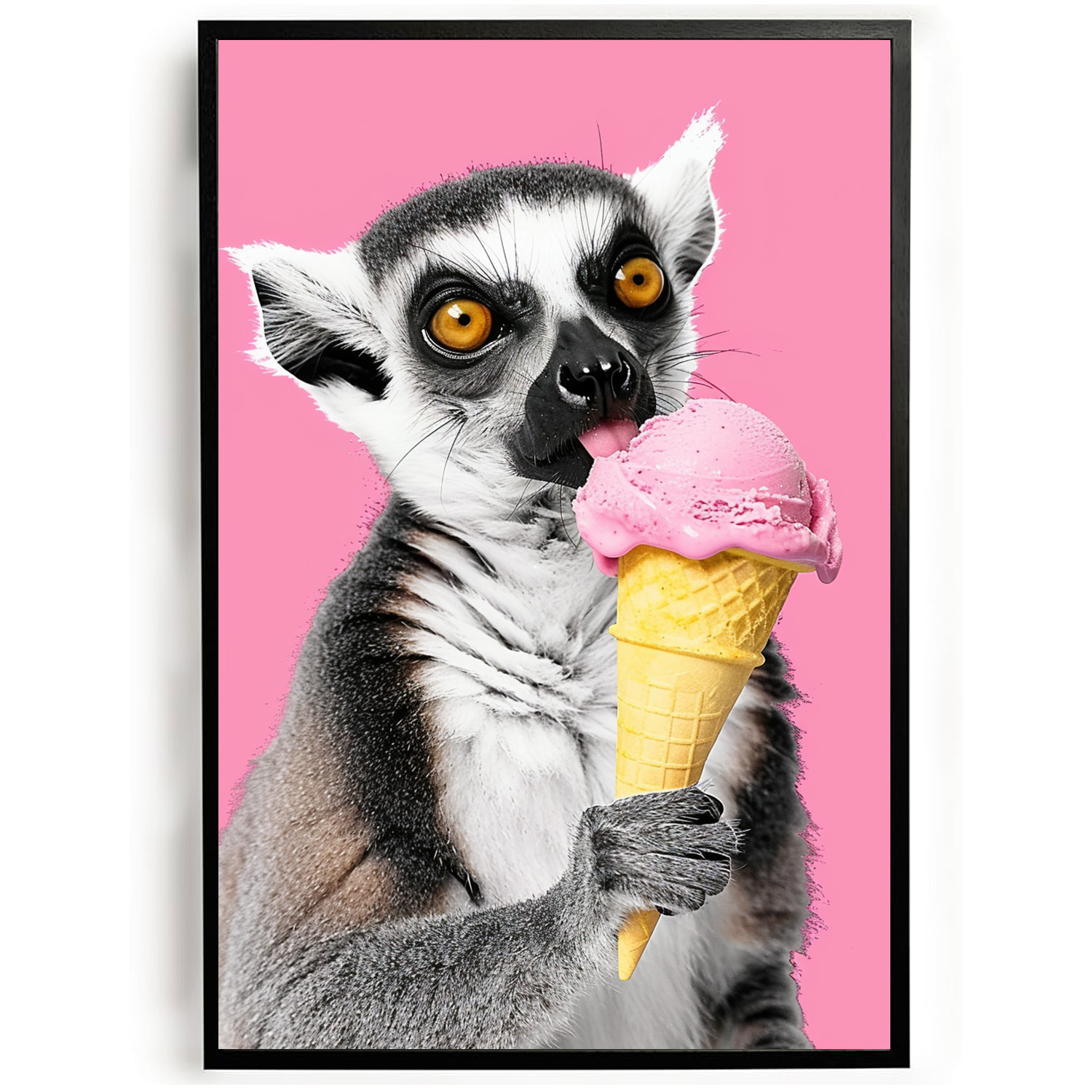 Op zoek naar een grappige poster voor de slaapkamer, kinderkamer of kantoor? Dan is de “Poster maki eet een ijsje” precies wat je nodig hebt!