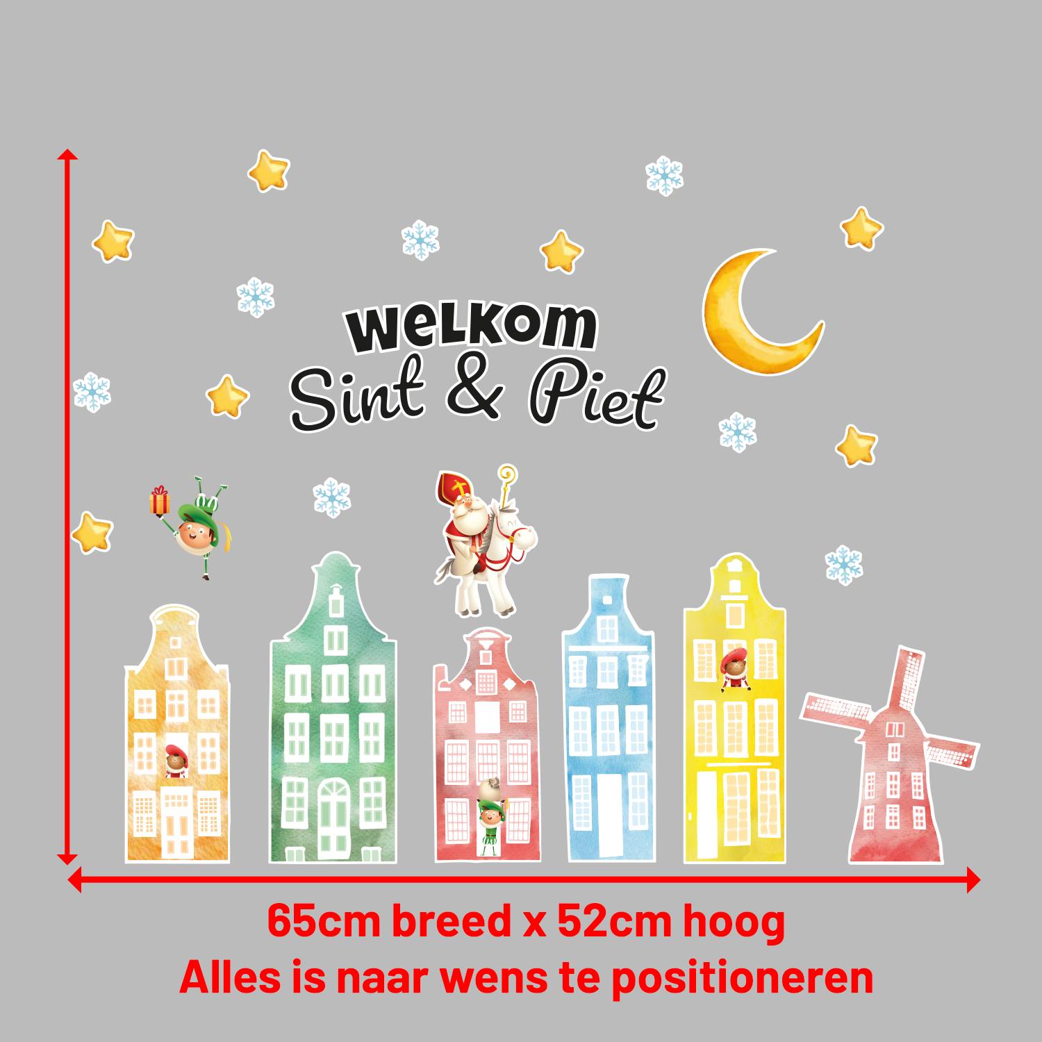 Ben je opzoek naar mooie raamstickers voor Sinterklaas? Deze kleurrijke set is dan een mooie en goedkope oplossing, ze zijn dubbelzijdig waardoor je aan beide kanten van het raam een mooie illustratie ziet. Er zitten 25 elementen in deze set waarvan zes mooi vormgegeven huisjes. De huisjes hebben de stijl van gezellige Amsterdamse grachtenpandjes.